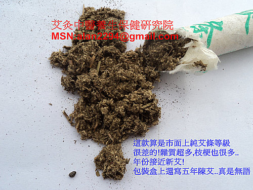 當年新艾為的綠色,1年內新艾為淺綠或咖啡綠,陳艾絨色土黃或金黃..越陳年的艾越接近金黃!