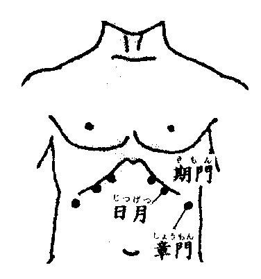 章門(右,腋中線,第一浮肋前端,屈肘合腋時正當肘尖盡處)、中脘(臍上4寸)。